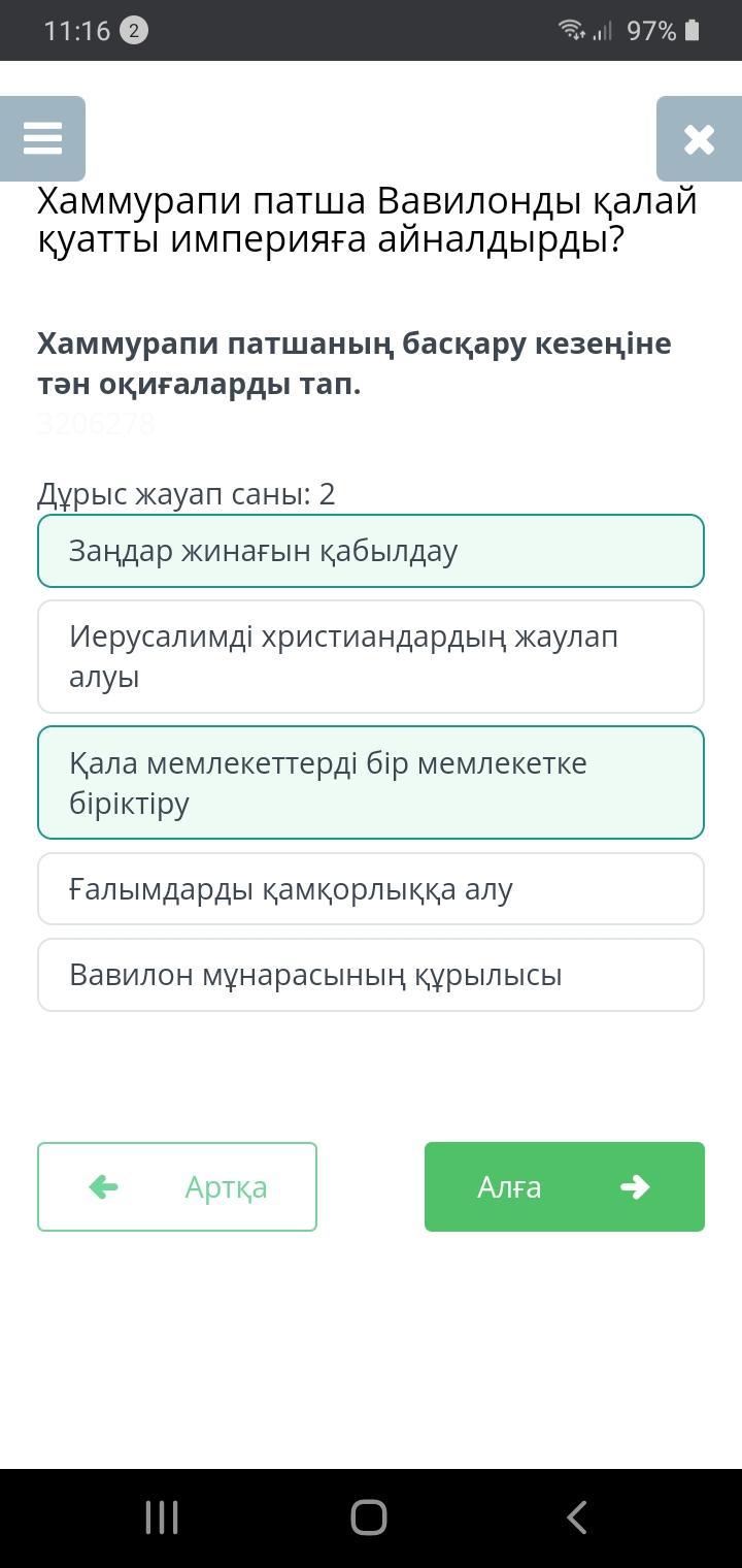 Хаммурапи патшаның басқару кезеңіне тән оқиғаларды тап.