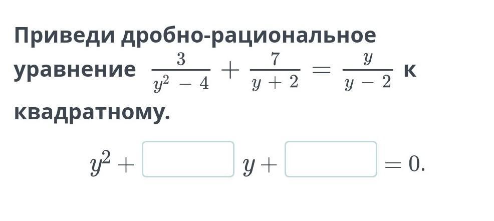 Умножить уравнение (все части) на у²-4 (это разность квадратов, в развёрнутом виде (у - 2)(у + 2)), чтобы избавиться от дробного выражения.