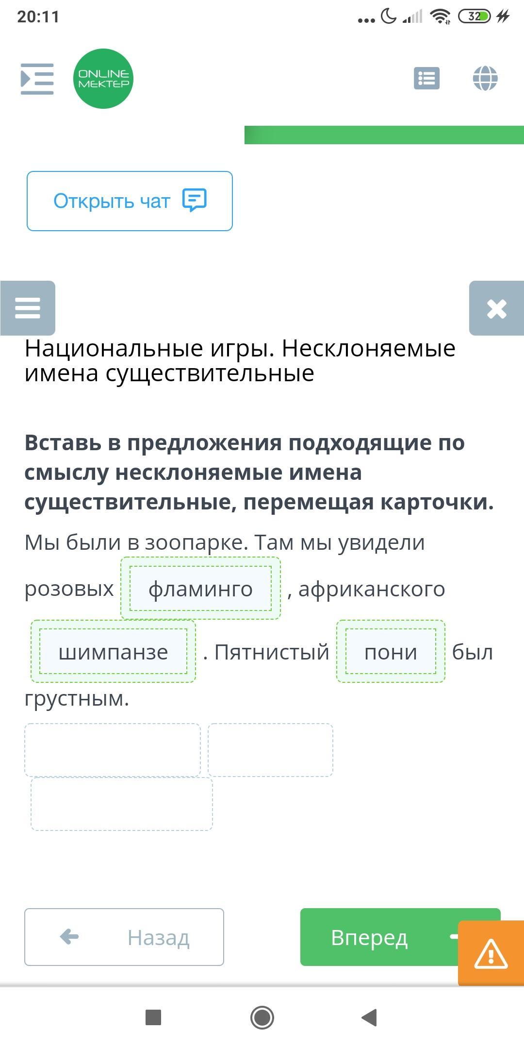 Вставь в предложения подходящие по смыслу несклоняемые имена существительные, перемещая карточки . Мы были в зоопарке. Там мы увидели розовых , африканского . Пятнистый был грустным. Пони.фламинго.шинпанзе Срочно помогите