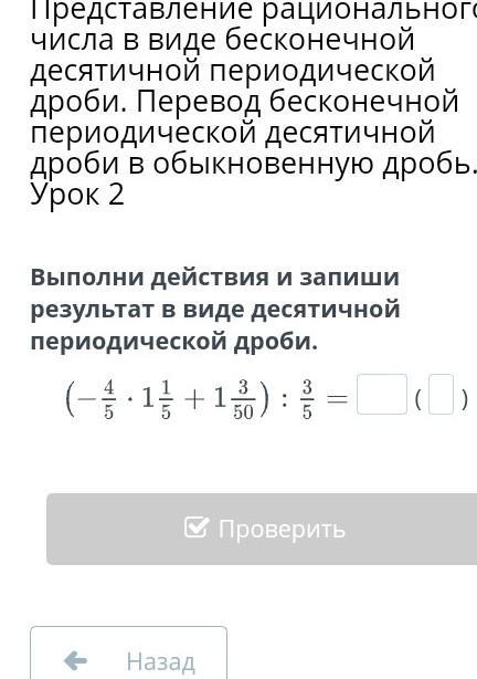 (-4/5 * 6/5) : 3/5 = (-24/25 + 53/50) : 3/5 = (-48/50 + 53/50) : 3/5 = 5/50 * 5/3 = 5/30 = 1/6 = 0,1(6)