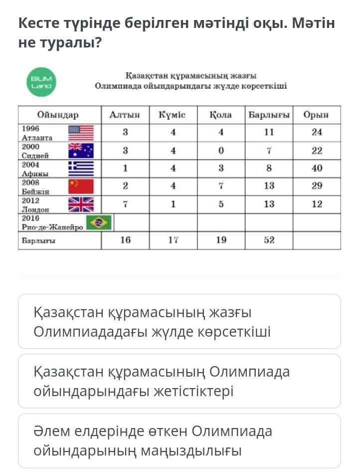 Кесте түрінде берілген мәтінді оқы. Мәтін не туралы?