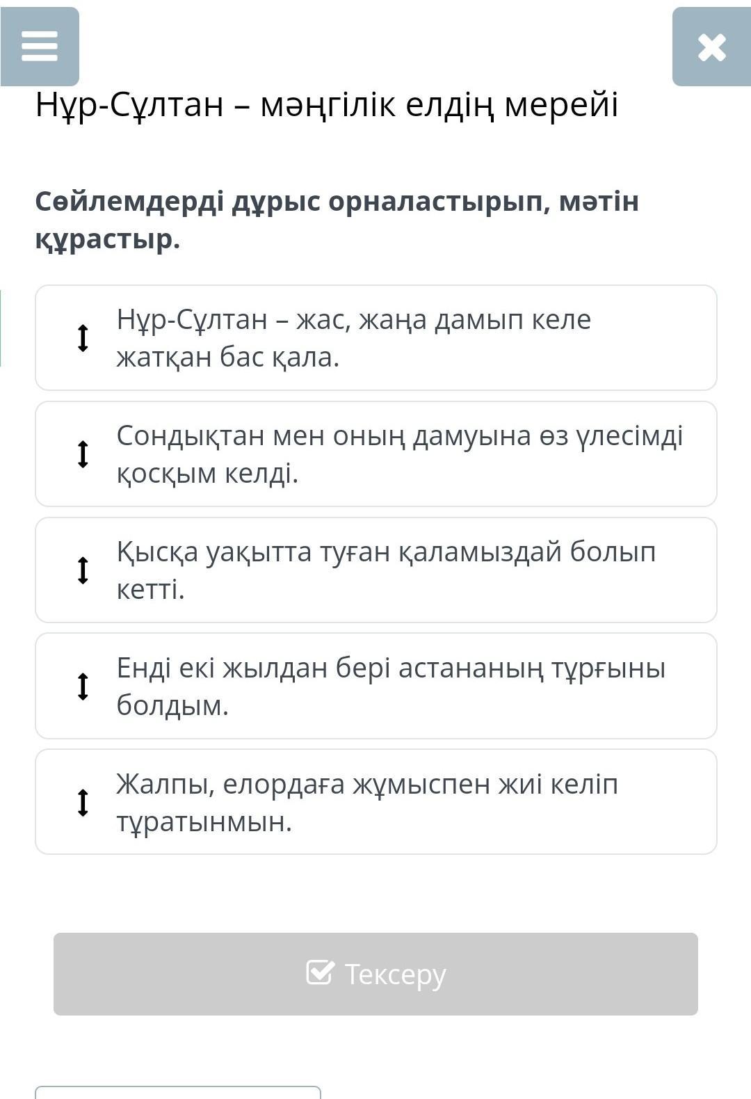 Ответ:Нұр-Сұлтан – жас, жаңа дамып келе жатқан бас қала.