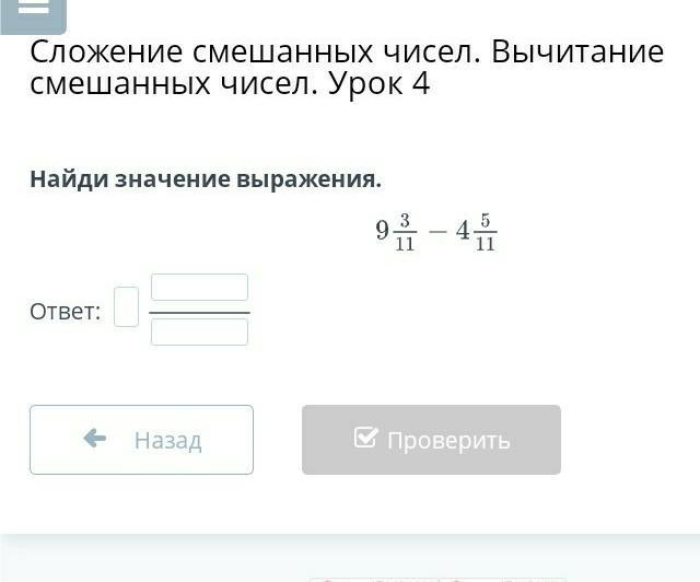 9 3/11 – 4 5/11 = 4 9/11