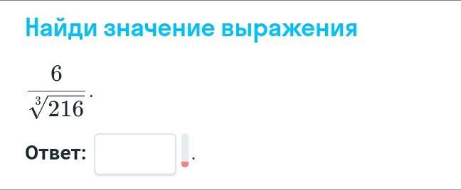 6/ куб корень(216)=6/куб корень (6^3)=6/6=1