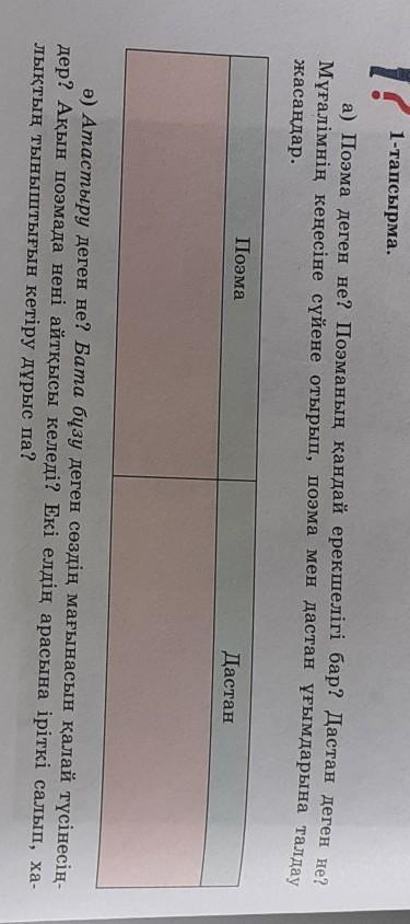 Мұғалімнің кеңесіне сүйене отырып, поэма мен дастан ұғымдарына талдау