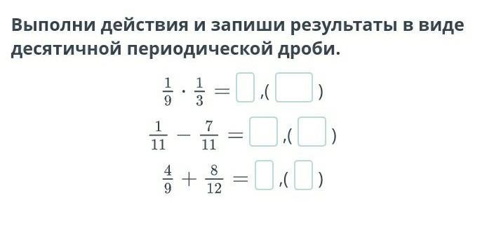Выполни действия и запиши результаты в виде десятичной периодической дроби.