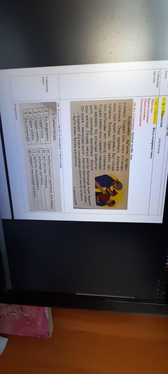 III. Жазылым.106 бет 5-тапсырма. Сәйкестендір. и прочитать если не поняли 106 бет 4-тапсырма. Мәтінді түсініп оқы.