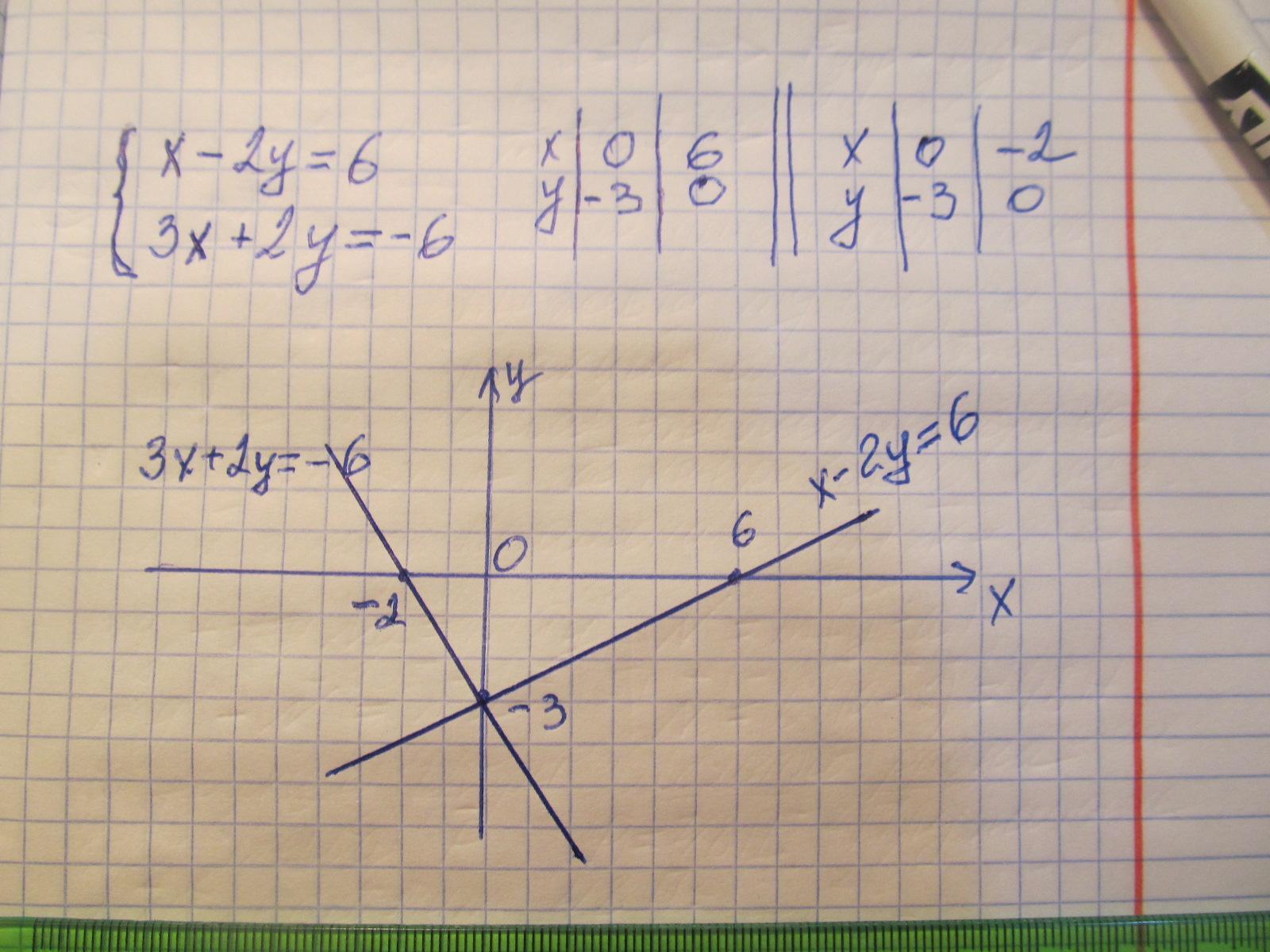 Даны уравнения 2-х прямых. Строим по двум точкам.