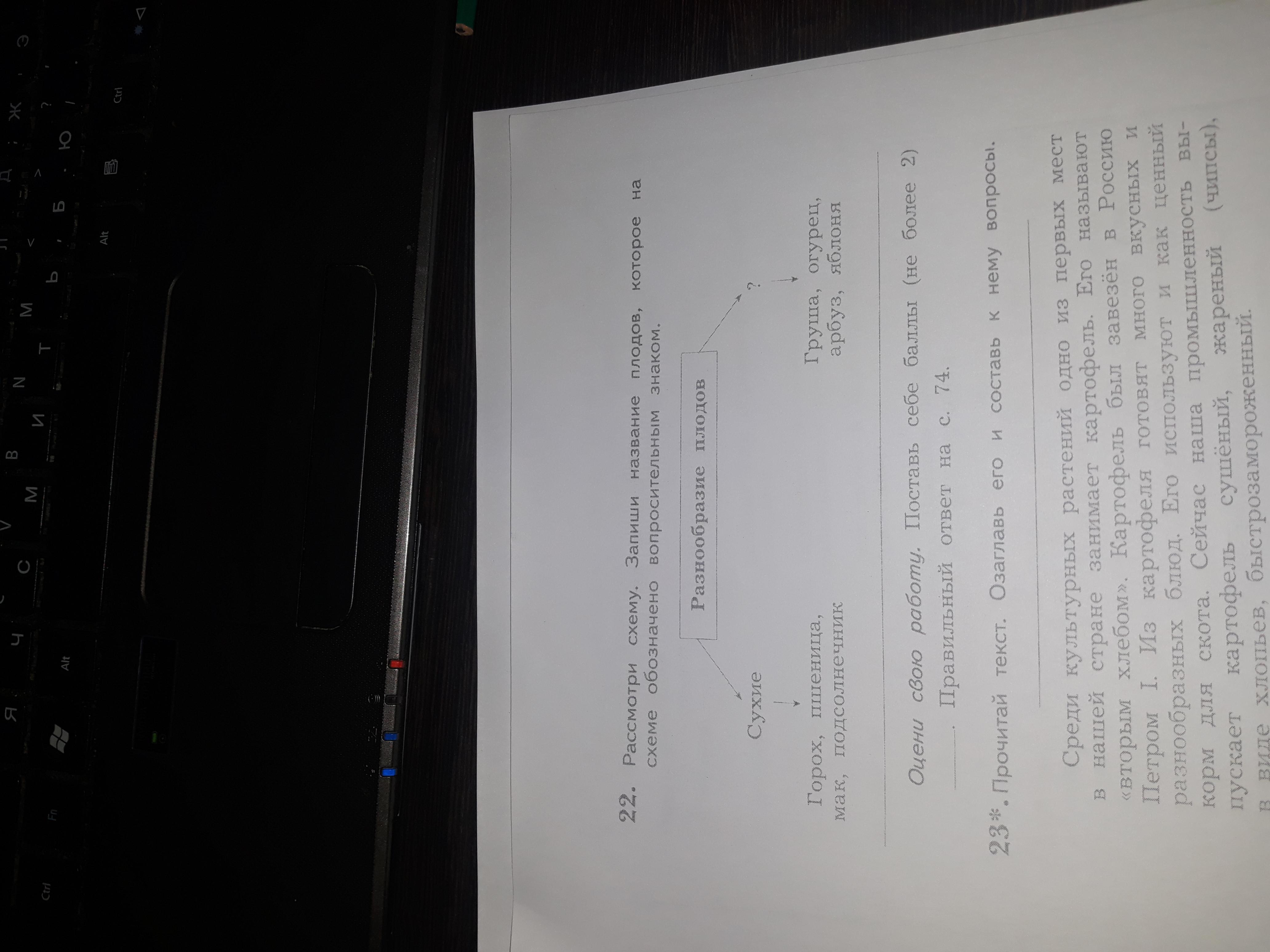 РАССМОТРИ СХЕМУ. ЗАПИШИ НАЗВАНИЕ ПЛОДОВ, КОТОРОЕ НА СХЕМЕ ОБОЗНАЧЕНО ВОПРОСИТЕЛЬНЫМ ЗНАКОМ