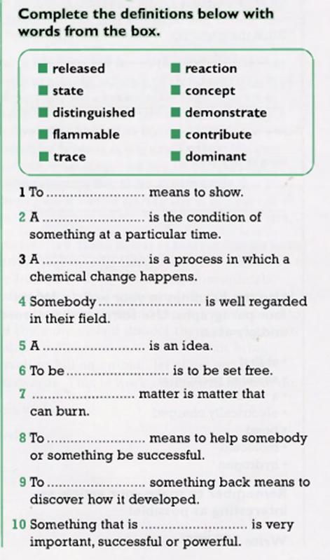 1demonstrate 2state 3reaction 4distinguished 5concept 6released 7flammable 8contribute 9trace 10dominant