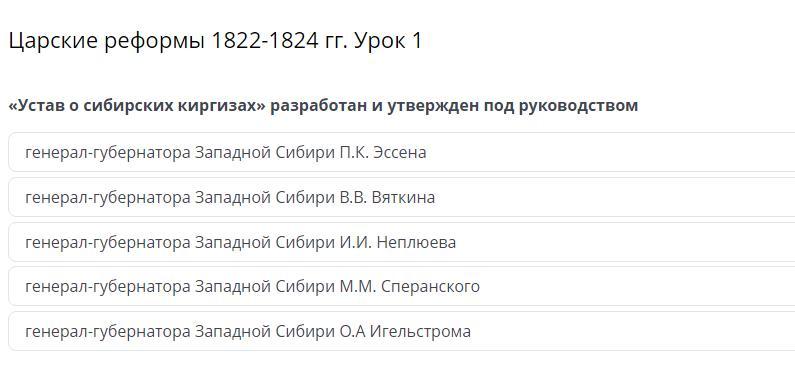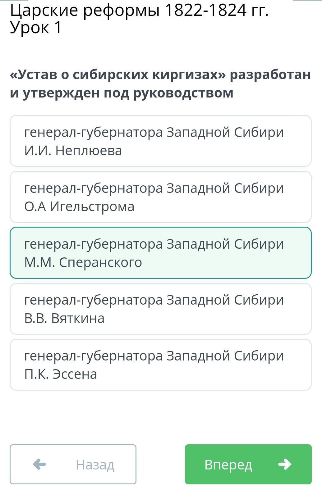 Правильный ответ будет: генерал-губернатора Западной Сибири М.М. Сперанского.