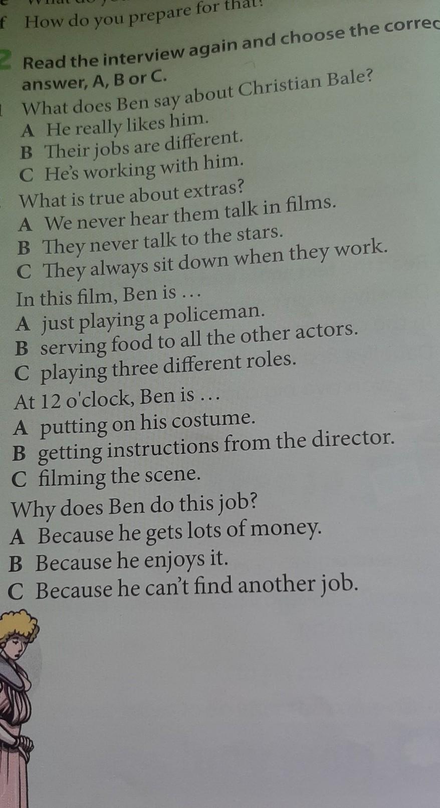 Это аудирование, перед этим должен быть текст, в котором ответы. Задание "прочитать интервью и выбрать правильный вариант")