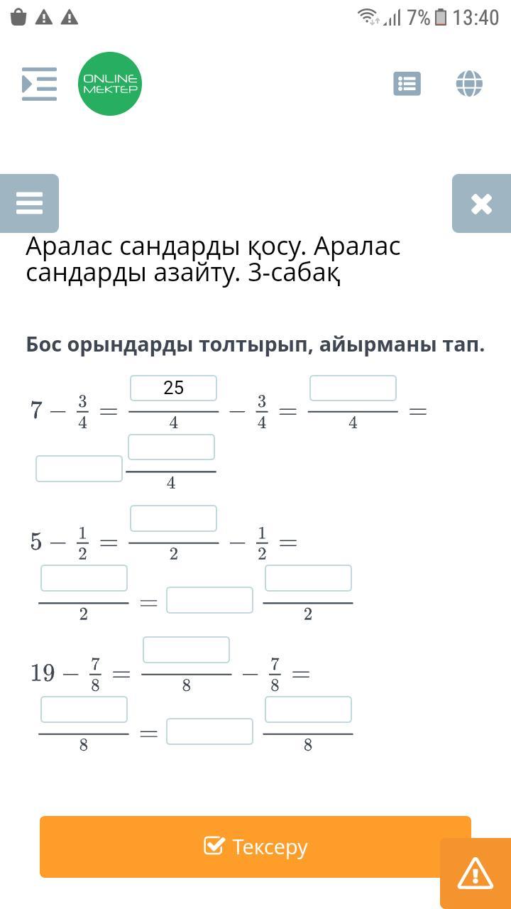 7 - 3/4 = 28/4 - 3/4 = 25/4 = 8¼.