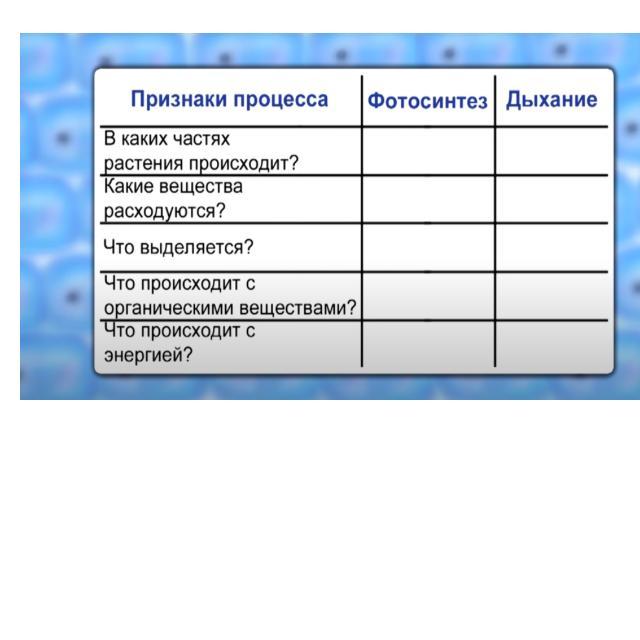 Фотосинтез - происходит в листьях, в клетках с хлоропластами. Расходуется хлорофилл, углекислый газ, вода. Выделяется кислород. Они образуются из неорганических. Она затрачивается.