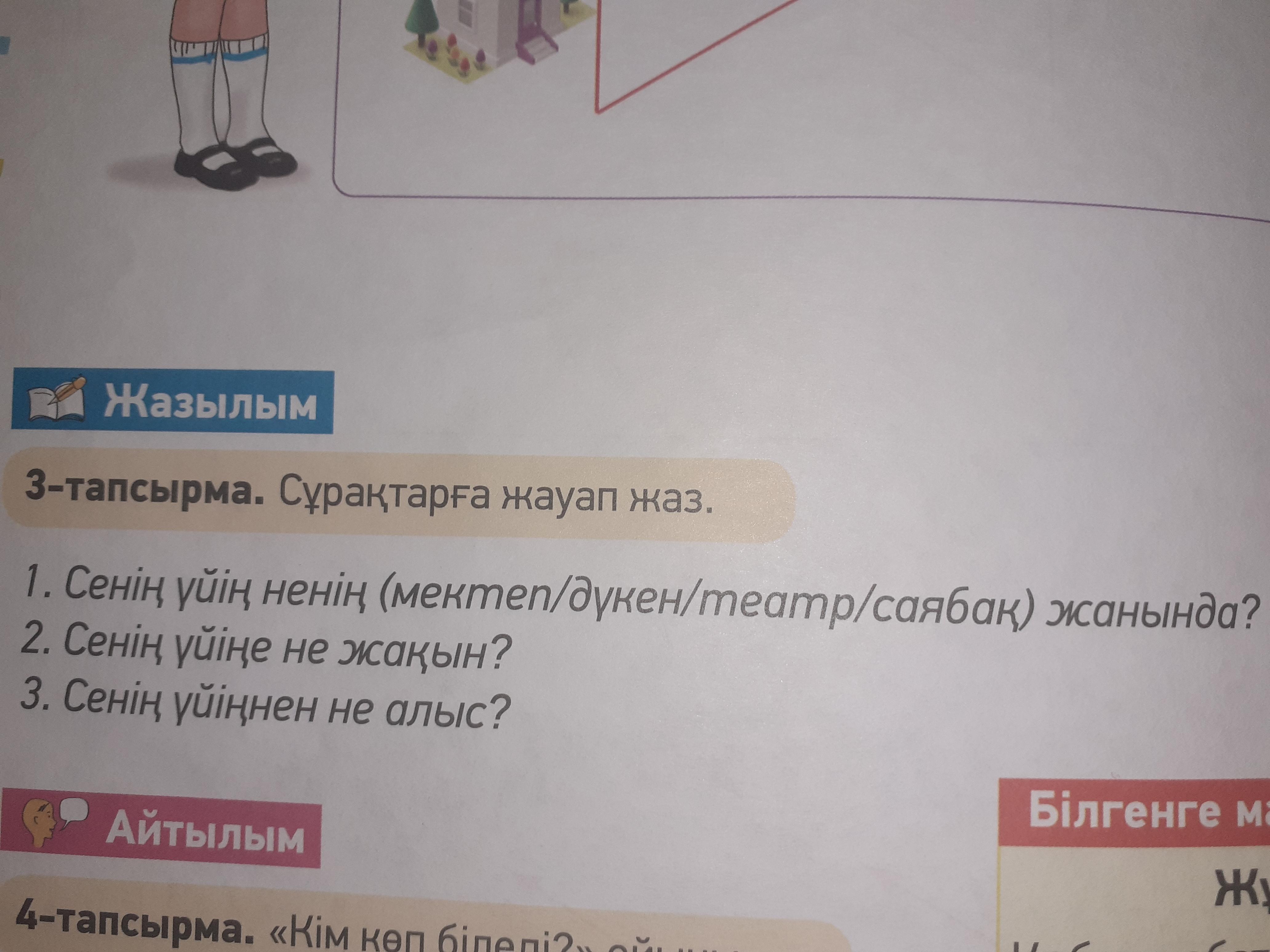 1Мысалы менің үйім дүкеннің жанында 2менің үйіме дүкен жақын 3менің үйім театрдан алыс