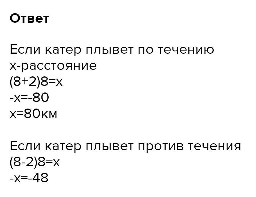 Из пункта А до пункта Б катер плывет по течению 1час 15мин со скоростью 10км/ч. Сколько времени займет обратная дорога, если скорость катера против течения будет 8км/ч