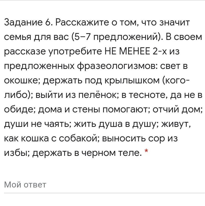 Семья для меня это важна.Так как семья помогает тебе выйти из пелёнок.И в семье должно жить спокойствие,понимание и любовь.И в семье нельзя жить как кошка с собакой.Всегда уважать старших,и помогать младшим.Вот что я считаю "Семья"