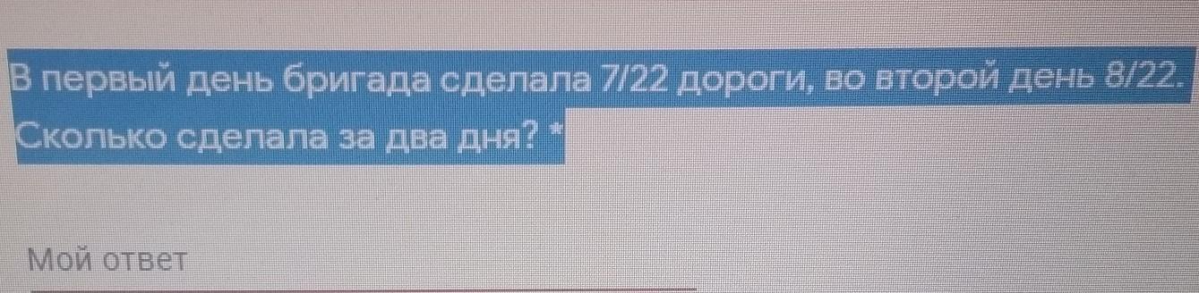 В первый день бригада сделала 7/22 дороги, во второй день 8/22.