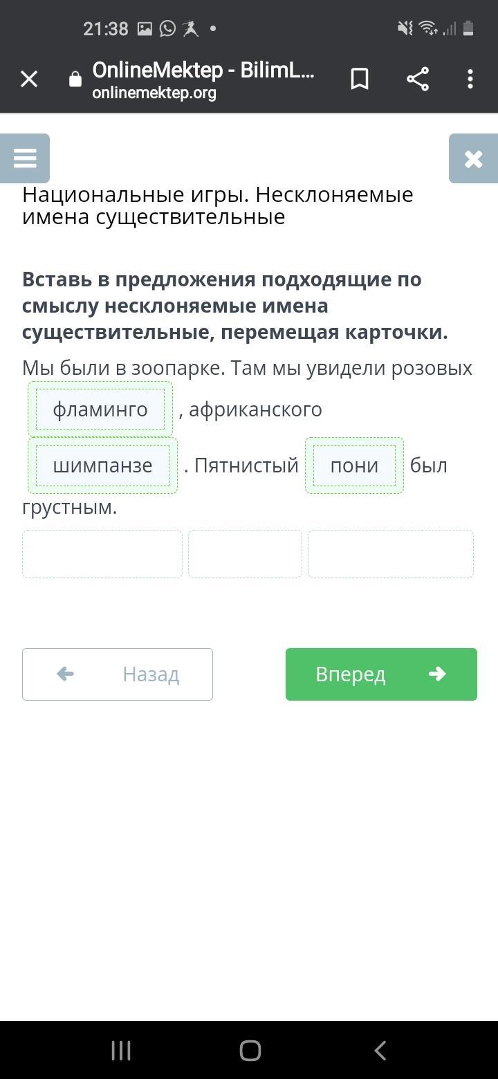 Вставь в предложения подходящие по смыслу несклоняемые имена существительные, перемещая карточки.