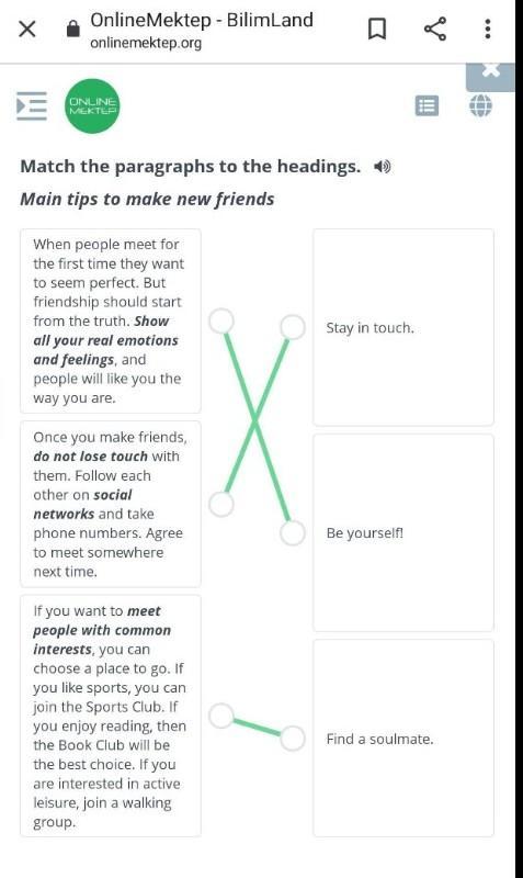 Making new friends Match the paragraphs to the headings. Main tips to make new friends Плиз Помогите дам 10 баллов За ответ!