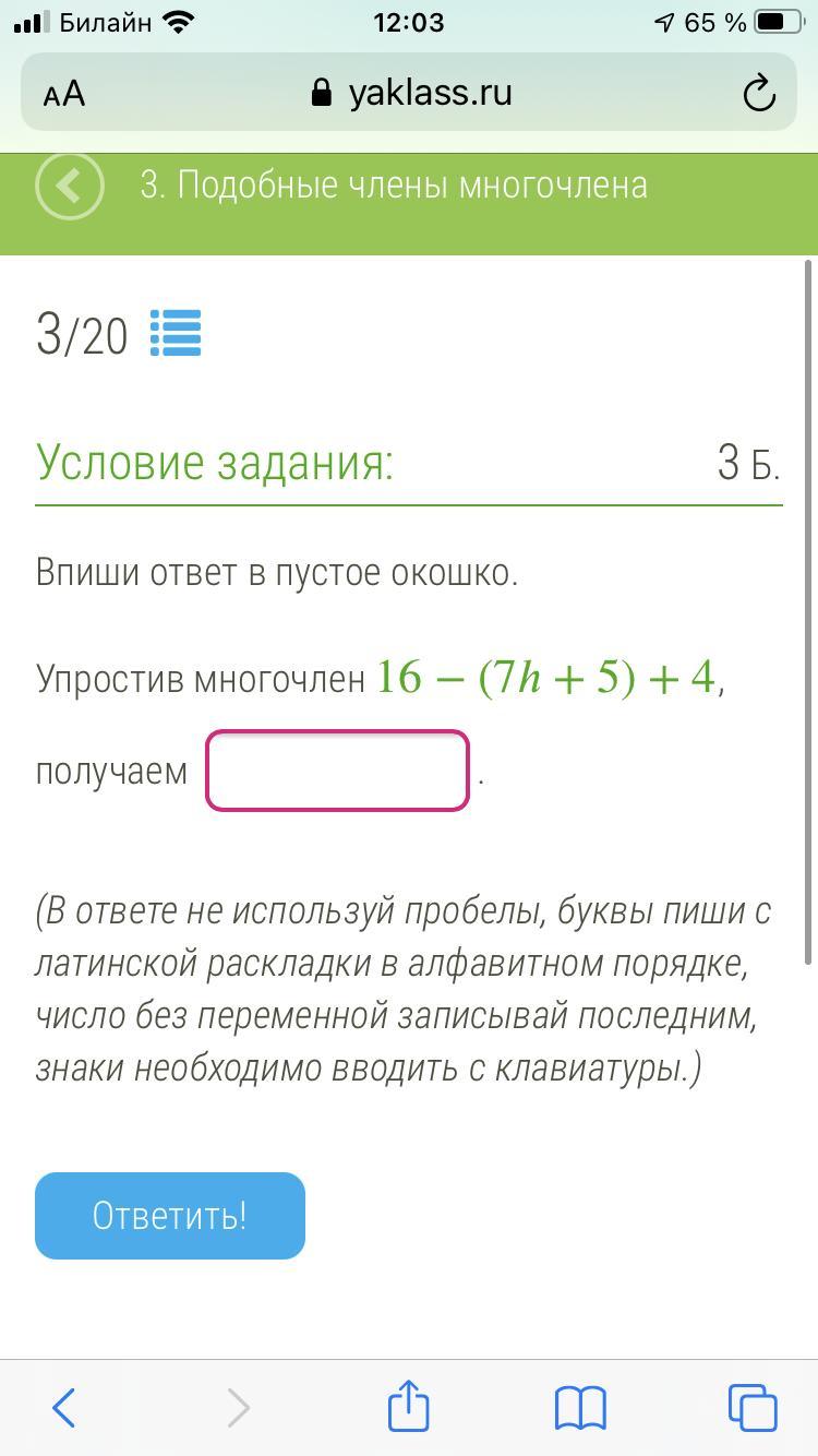 16-(7h+5)+4=16-7h-5+4=15-7h