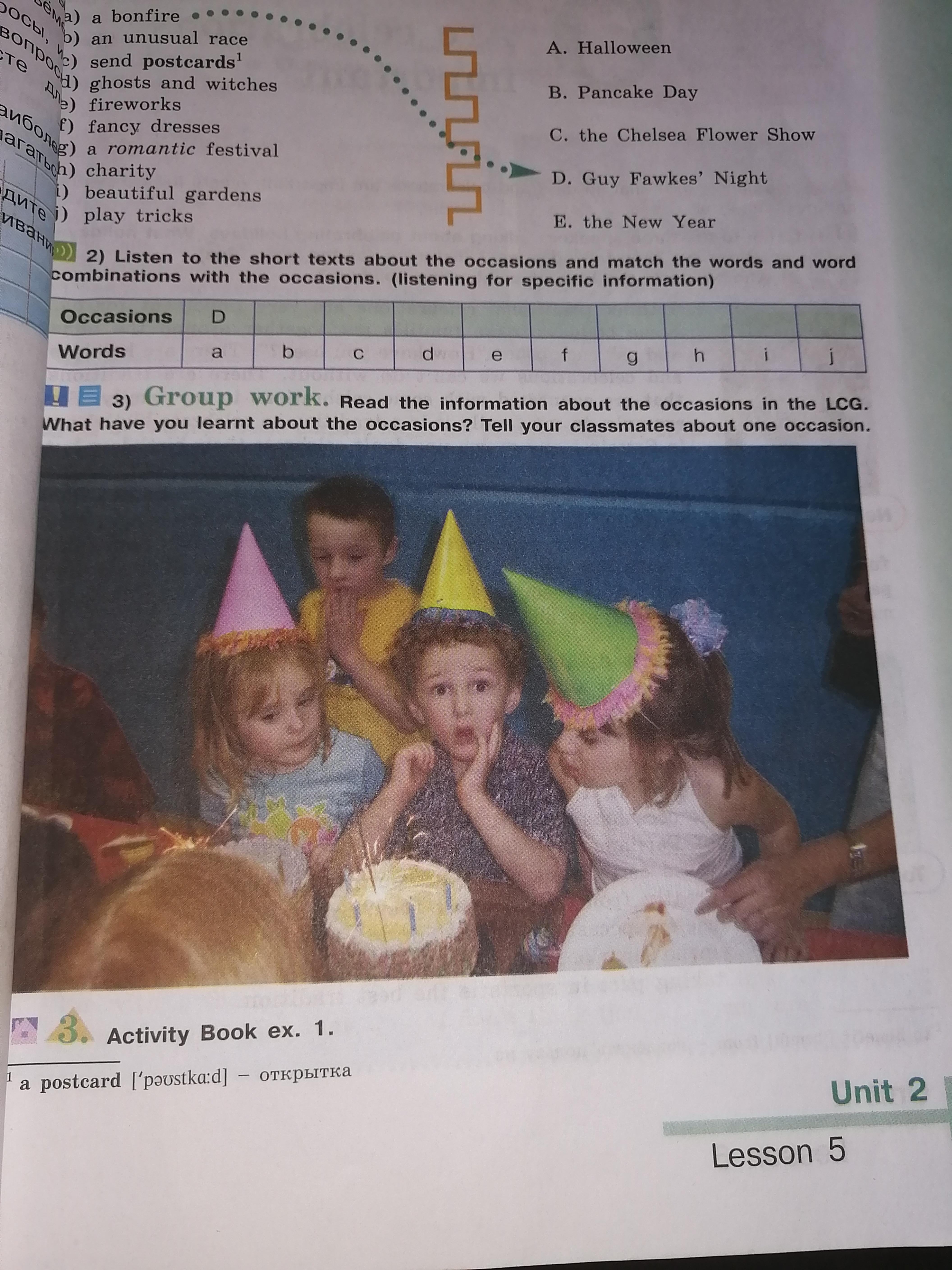 The picture shows children. They celebrate the birthday of one of the children. The guys are fun and happy. Children blow out candles on a delicious cake. Happy holiday to them.