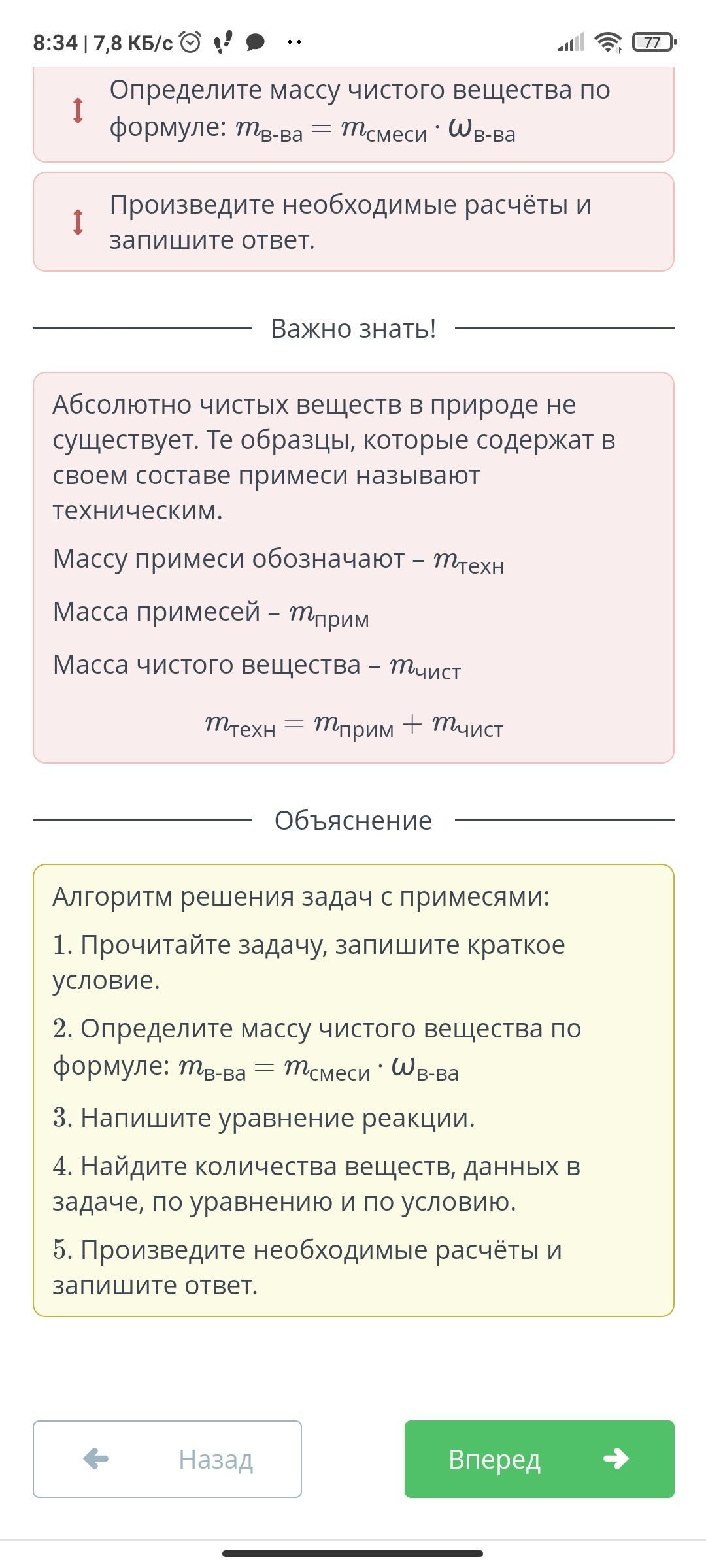 Определите массу чистого вещества по формуле: mв-ва = mсмеси ⋅ ωв-ва