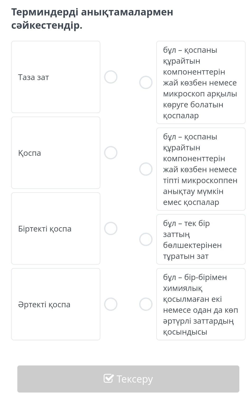 Терминдерді анықтамалармен сәйкестендір. Көмектесіндерсі