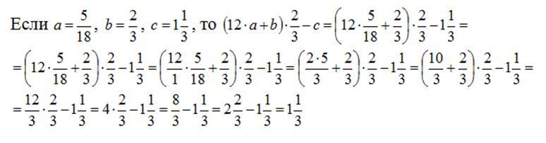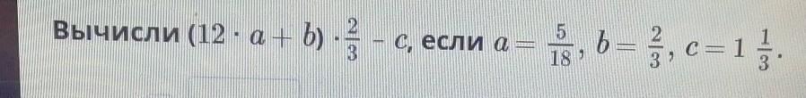 вычисли (12×а + b)×2/3 - C если а= 5/15,b= 2/3 c= 1 1/3