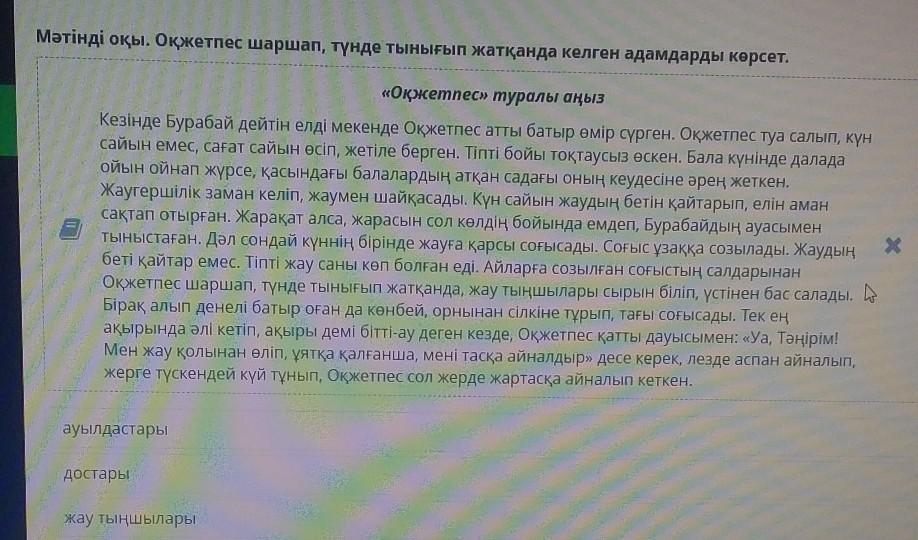 Мәтінді оқы. Оқжетпес шаршап, түнде тынығып жатқанда келген адамдарды көрсет.
