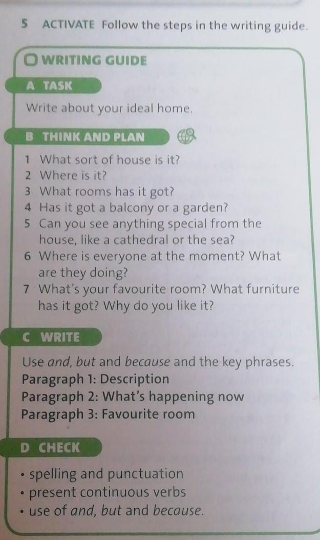 My ideal home is a one-storeyed house with four rooms in it. It is not far from the centre of the city. The house has got a spacious kitchen, a large living room, two bedrooms and two bathrooms. There is a garden behind the house. From my house I can see the city park with lots of green trees.