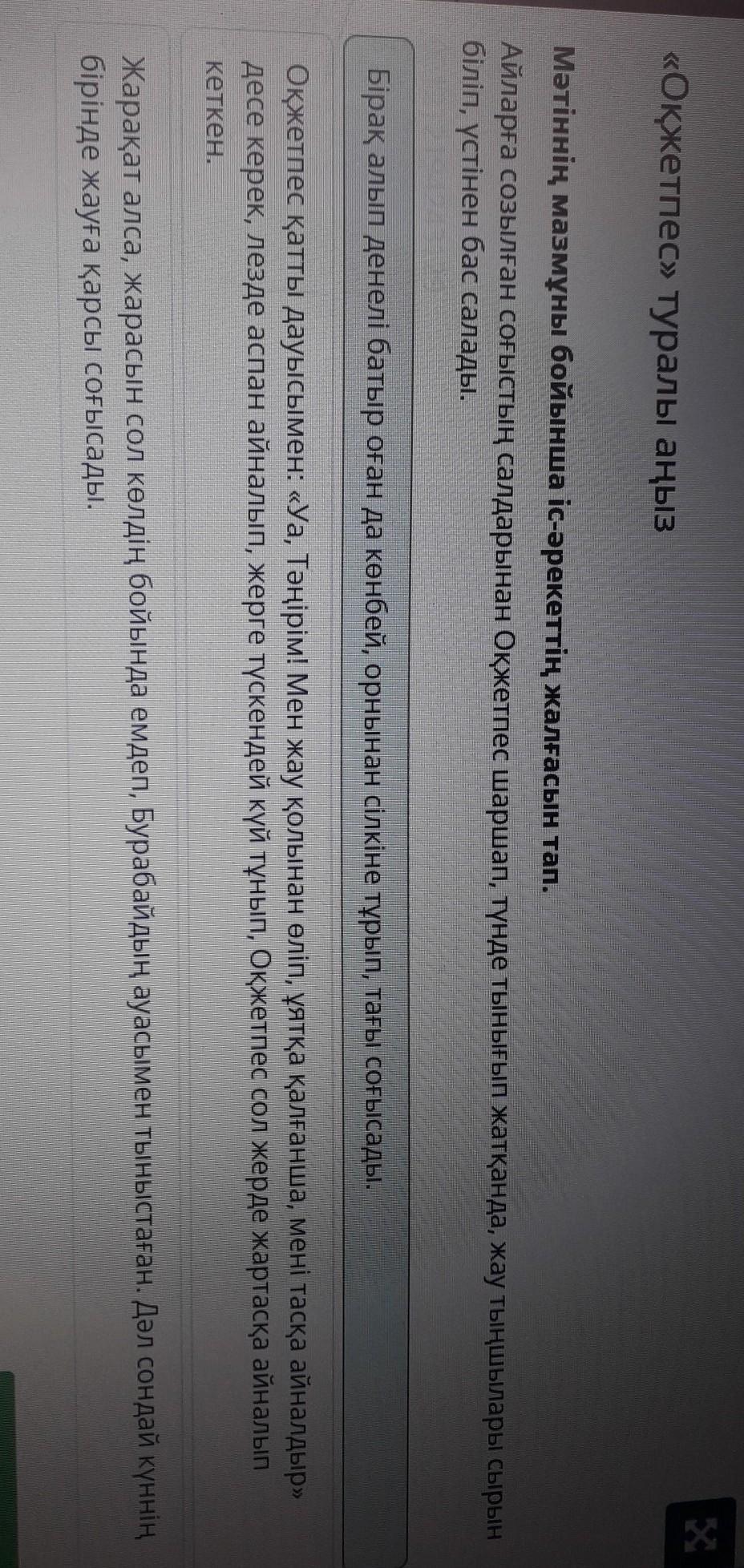 Мәтіннің мазмұны бойынша іс-әрекеттің жалғасын тап.