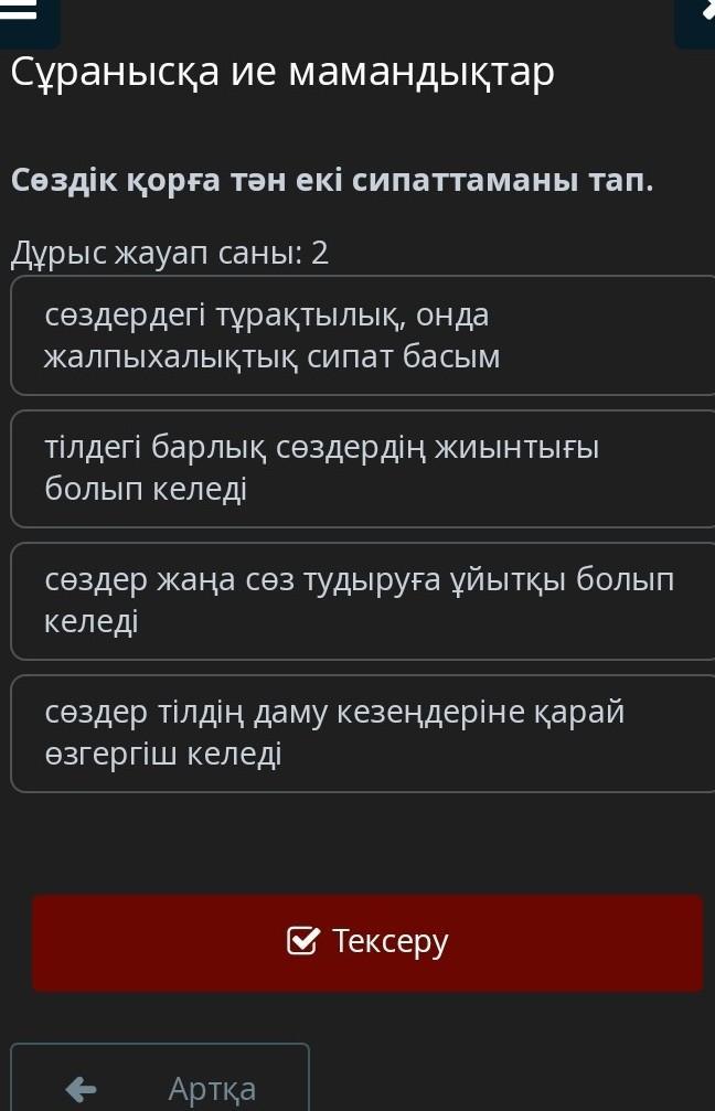 тілдегі барлық сөздердің жиынтығы болып келеді