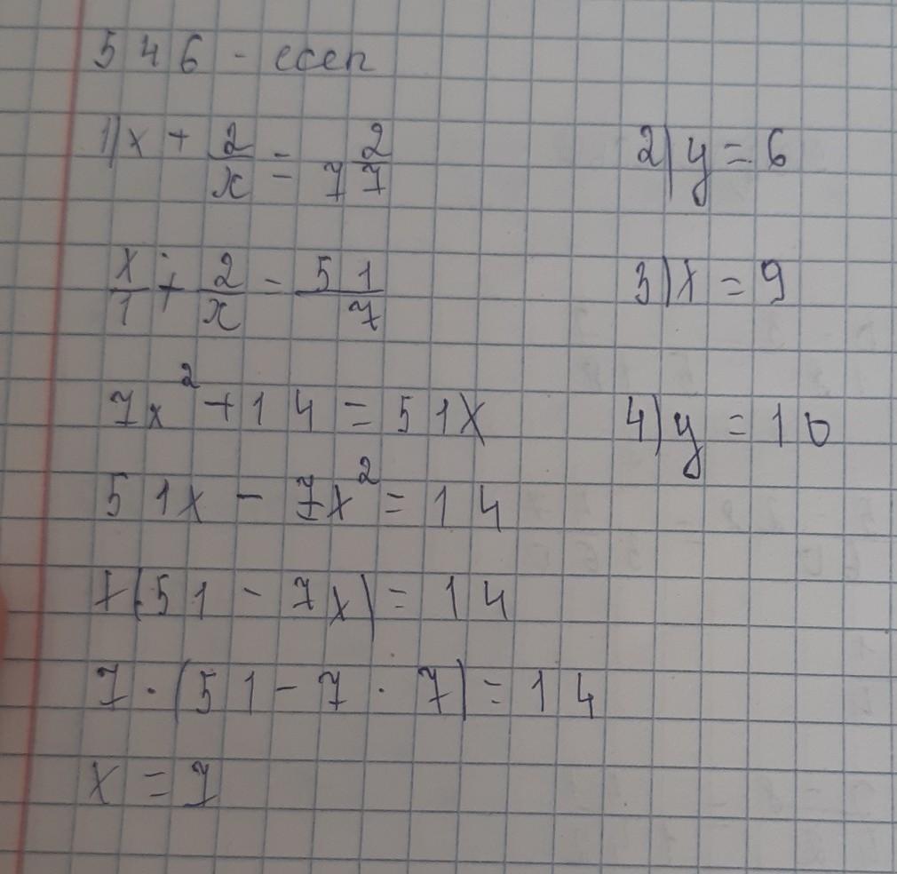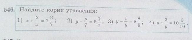 Найдите корни уравнения: х + 2/x = 7 2/7 2) у - у/7 = 5 1/7