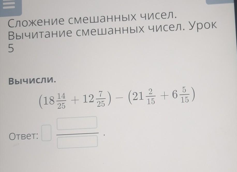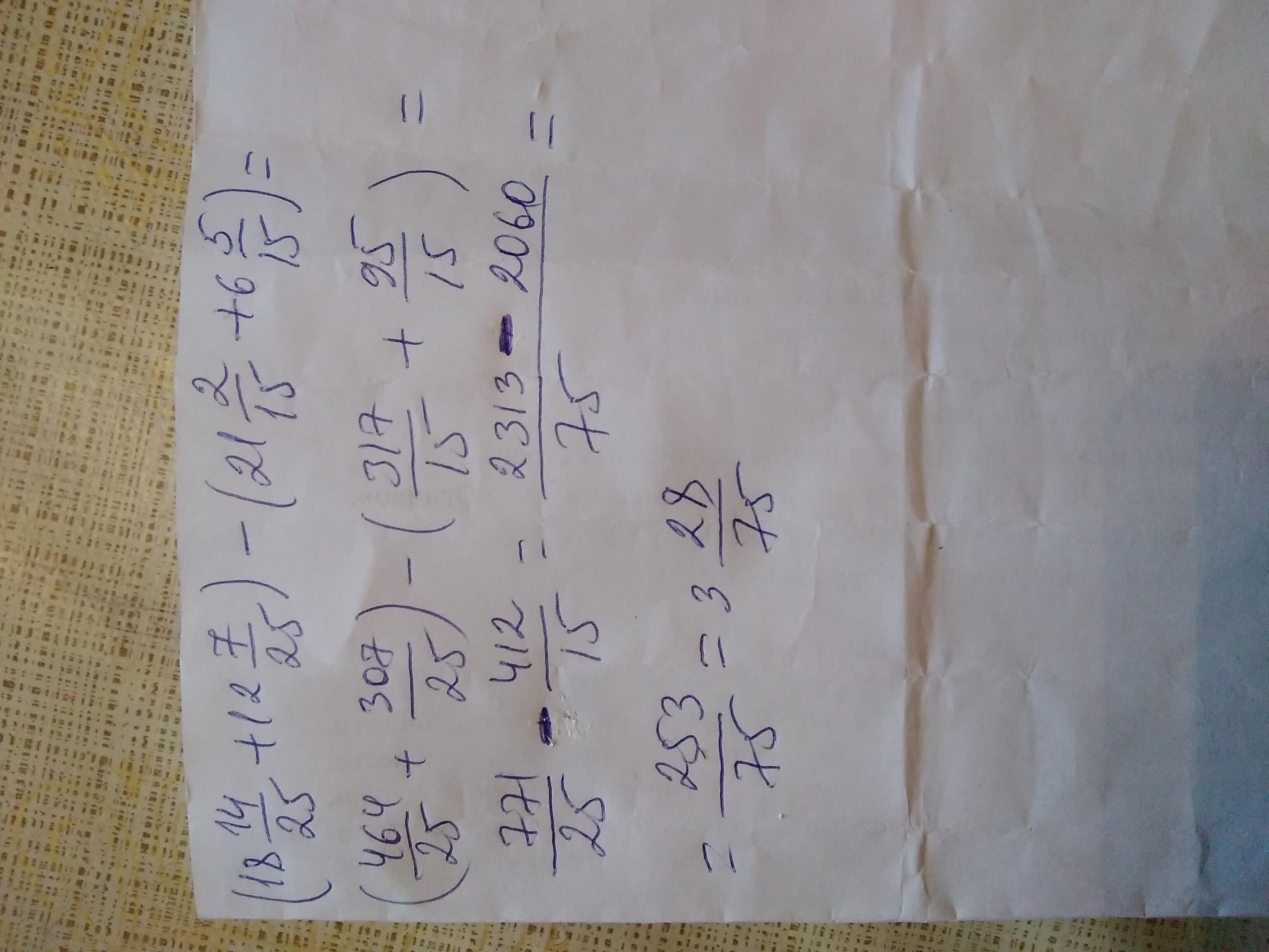Вычисли ( 18 14/25 + 12 7/25) -( 20 2/15 + 6 5/15)