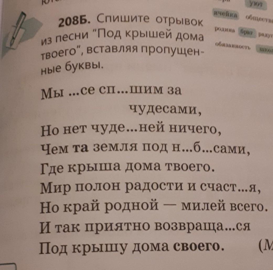 2. Упражнение 208Б: сначала выпишите слова с пропусками из песни «Под крышей дома твоего», затем выпишите все прилагательные и определите разряд (качественное, относительное, притяжательное) и степень сравнения (сравн.\прост\слож; превосход.прост\слож)СРОЧНООО