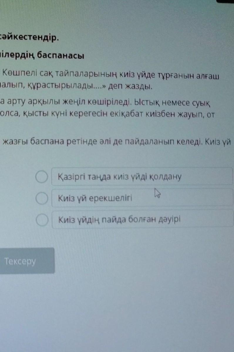 Ұсынылған тақырыпшаларды мәтін бөліктерімен сәйкестендір.