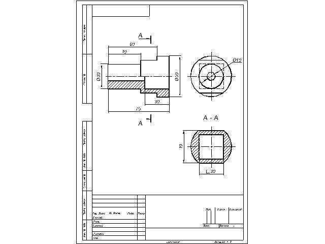 На листе формата А4 выполните вид слева и постройте целе сообразный разрез одной из деталей (рис. 201а). Нанесите размеры.