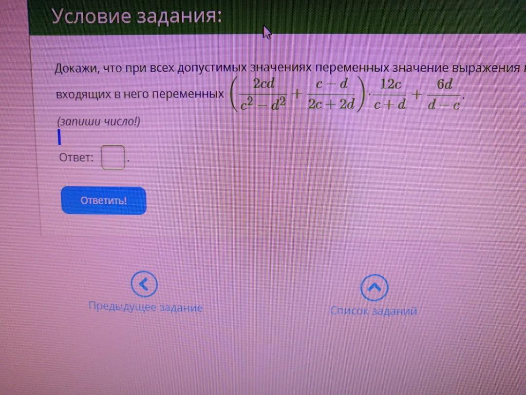Докажи, что при всех допустимых значениях переменных значение выражения не зависит от значений входящих в него переменных