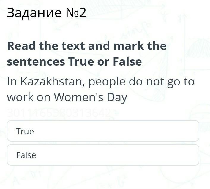 задание 2 Прочитайте текст и отметьте предложения True или Fаlse в Казахстане люди выходят на работу в женский день
