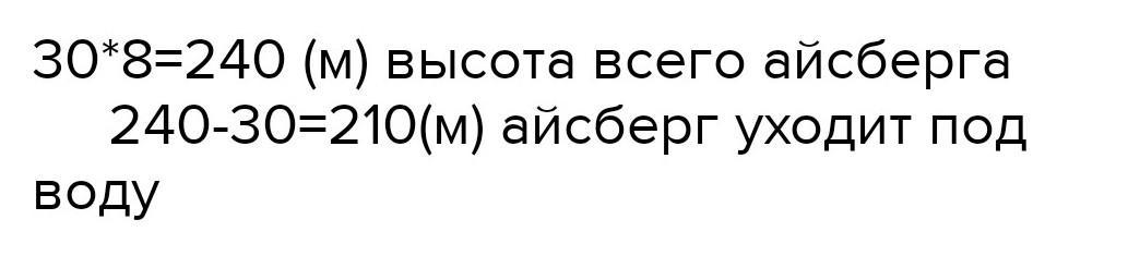 высота надводной части айсберга 30 м это восьмая часть всей его высоты На какую глубину Айсберг уходит под воду