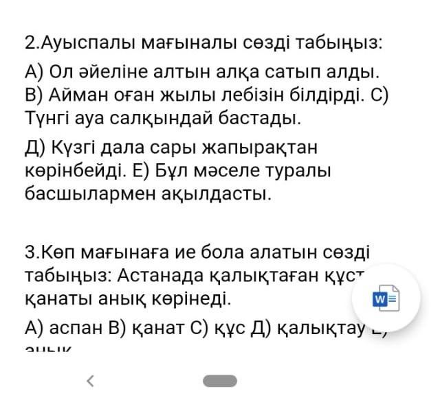 Ауыспалы мағыналы сөзді табыңыз.А) ол әйелінн алтын алқа сатып алды.В) Айман оған жылы лібіз білдірді.С) Түнде ауа салқындай бастады. И 3 тапсырманы устеп беріндерші