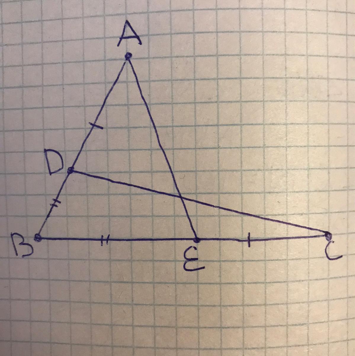 2)ВА=ВС тк ВА= ВD+DА и ВС=ВЕ+ЕС но DA=EC по условию,DB=BE по условию