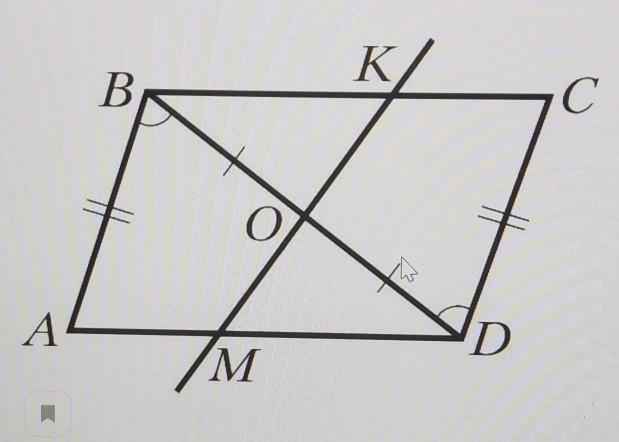 ∠MOD=∠BOK (вертикальные), BO = OD, => KOB=MOD по 2 углам и стороне