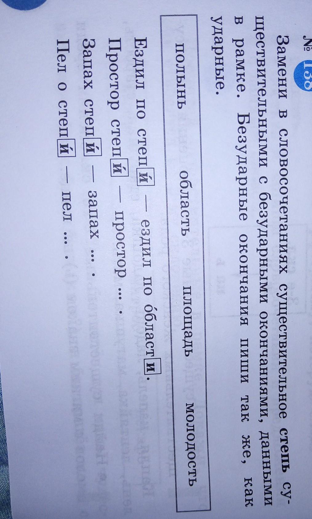 Замени в словосочетаниях существительное степь с существительными с безударными окончаниями, данными в рамке. безударное окончание пиши так же, как ударные