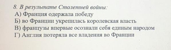 англичане потеряли почти все свои владения на континенте. А французы: в результате Столетней войны, принёсшей нации неисчислимые бедствия, страна сформировалась как единое государство.