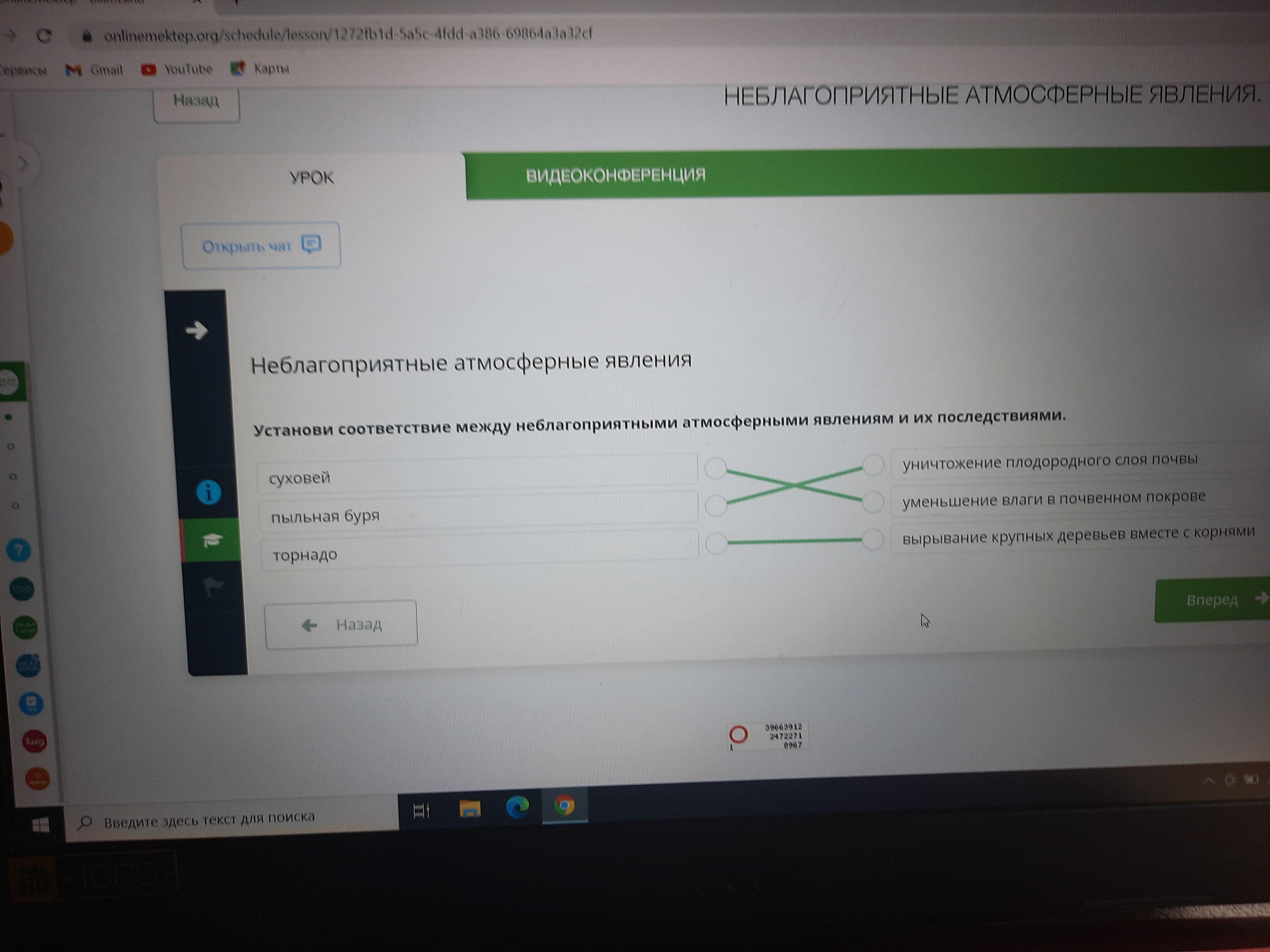 Установи соответствие между неблагоприятными атмосферными явлениям и их последствиями.