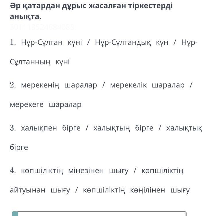 Әр қатардан дұрыс жасалған тіркестерді анықта.