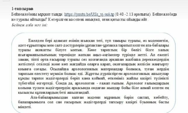 Бұл жерде өткеніміз жайлы ақпараттардың сақталуы, толықтыратын болсам ата-бабамыздан қалған мәдени мұраны сақтай білу жайлы мәселе көтерілген. Көне тарихымыз жайлы көптеген ақпарат естідік, бірақ кітаптар саны көп емес десекте болады. Себебі мәдени мұрамыз ауызша түрде жиі таралған, жазбаша түрі жетіспейді. Археологиялық зерттеулерді дамыту керекпіз, сол арқылы өткен тарихымыз жайлы көптеген ақпарат ала аламыз. Бізге ата-бабамыздан мұра болып қалған мәдениетімізді келер ұрпақ қолына сақтау керекпіз.