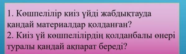 1)уық,құрақ көрпе,шаңырақ,кереге,туылдырық.